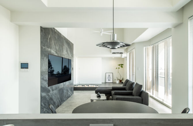 本物の素材感を活かし、ミッドセンチュリーを感じるテイストとの組み合わせで仕上げた空間です。